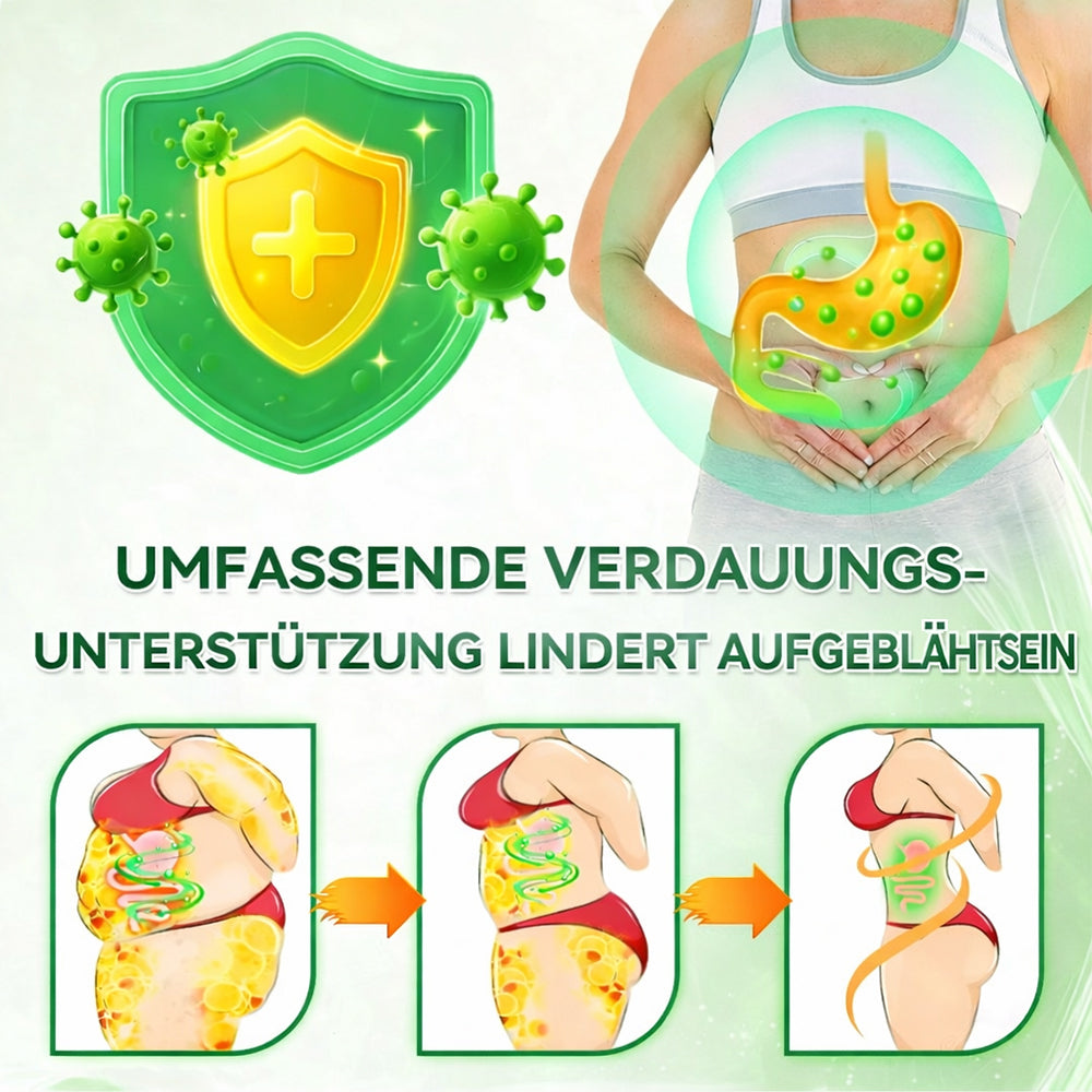 Moringa, Grüner Tee-Extrakt und Koriandersamenextrakt, die reich an natürlichen Polyphenolen sind, helfen, krankheitserregende Bakterien zu hemmen, die Vermehrung vorteilhafter Probiotika zu unterstützen und die Diversität des Mikrobioms zu steigern, wodurch Blähungen, unregelmäßige Darmtätigkeit und allgemeine Verdauungsbeschwerden verbessert werden.