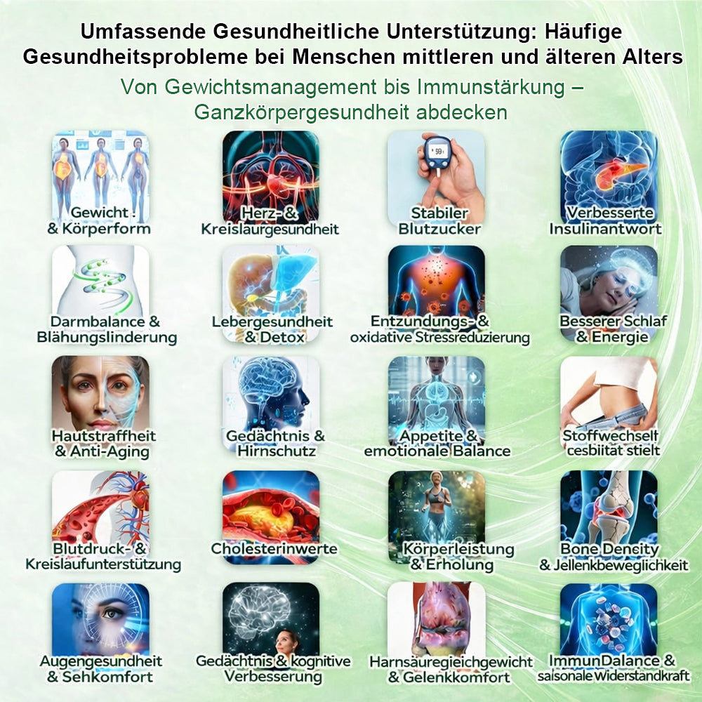 Vorteile: Unterstützt effektive Gewichtsreduktion und Appetitregulation, stabilisiert den Blutzuckerspiegel, fördert die Herz-Kreislauf-Gesundheit, reduziert chronische niedriggradige Entzündungen und hilft, durch Stoffwechselbedingte Müdigkeit zu lindern.