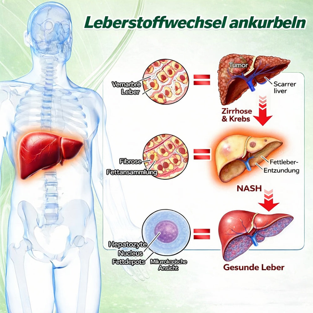 Mariendistel verbessert die Leberdetoxifizierung, indem sie die Aktivität von Enzymen der Phase I und II steigert, die Fettstoffverbrennung beschleunigt und die mitochondriale Energieproduktion erhöht. In Kombination mit Kurkumin steigert sie die Detoxifizierungseffizienz weiter, reduziert die Lipidakkumulation deutlich und unterstützt die mitochondriale Gesundheit. Zusammen fördert diese kraftvolle Kombination eine verbesserte Stoffwechselreinigung, reduziert Entzündungen und unterstützt die allgemeine Lebergesundheit. Bei kontinuierlicher Anwendung verbessert diese Synergie nicht nur die Leberfunktion, balanciert den Cholesterinspiegel und steigert die Insulinsensitivität, sondern hilft auch, die optimale Stoffwechseleffizienz wiederherzustellen und die natürlichen Detoxifizierungsprozesse des Körpers zu stärken.