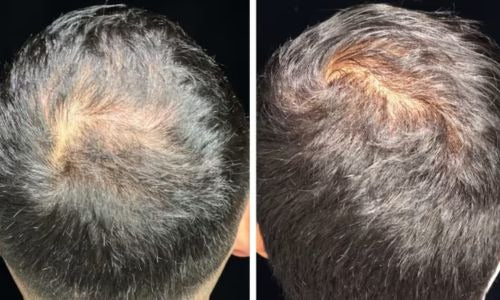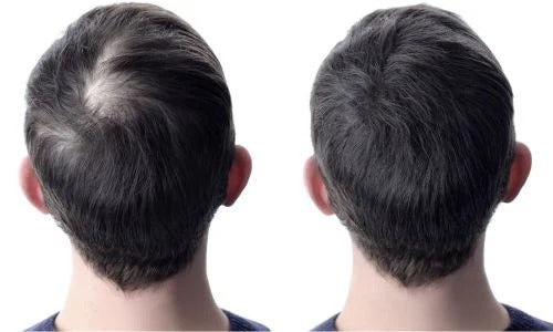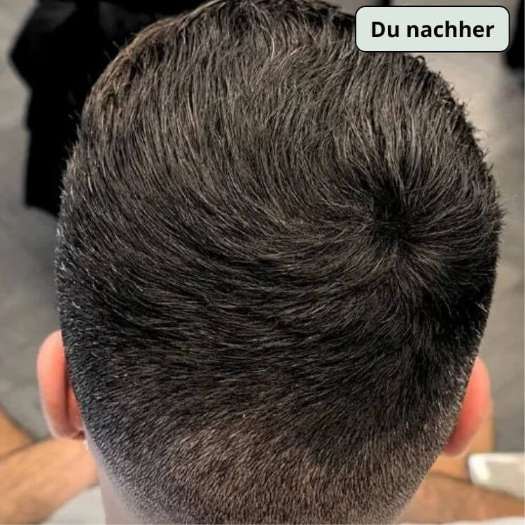 Selbst auf Flächen,die komplett kahl wirken, wachsen oft noch ultrafeine oder helle Härchen, die man mit bloßem Auge kaum sieht.Die Pigmente von Vollum haften genau an diesen mikroskopisch kleinen Haaren und füllen so die Lücken auf – für natürliche Dichte. So entsteht eine nahtlose Abdeckung,selbst bei fortgeschrittenem Haarausfall.